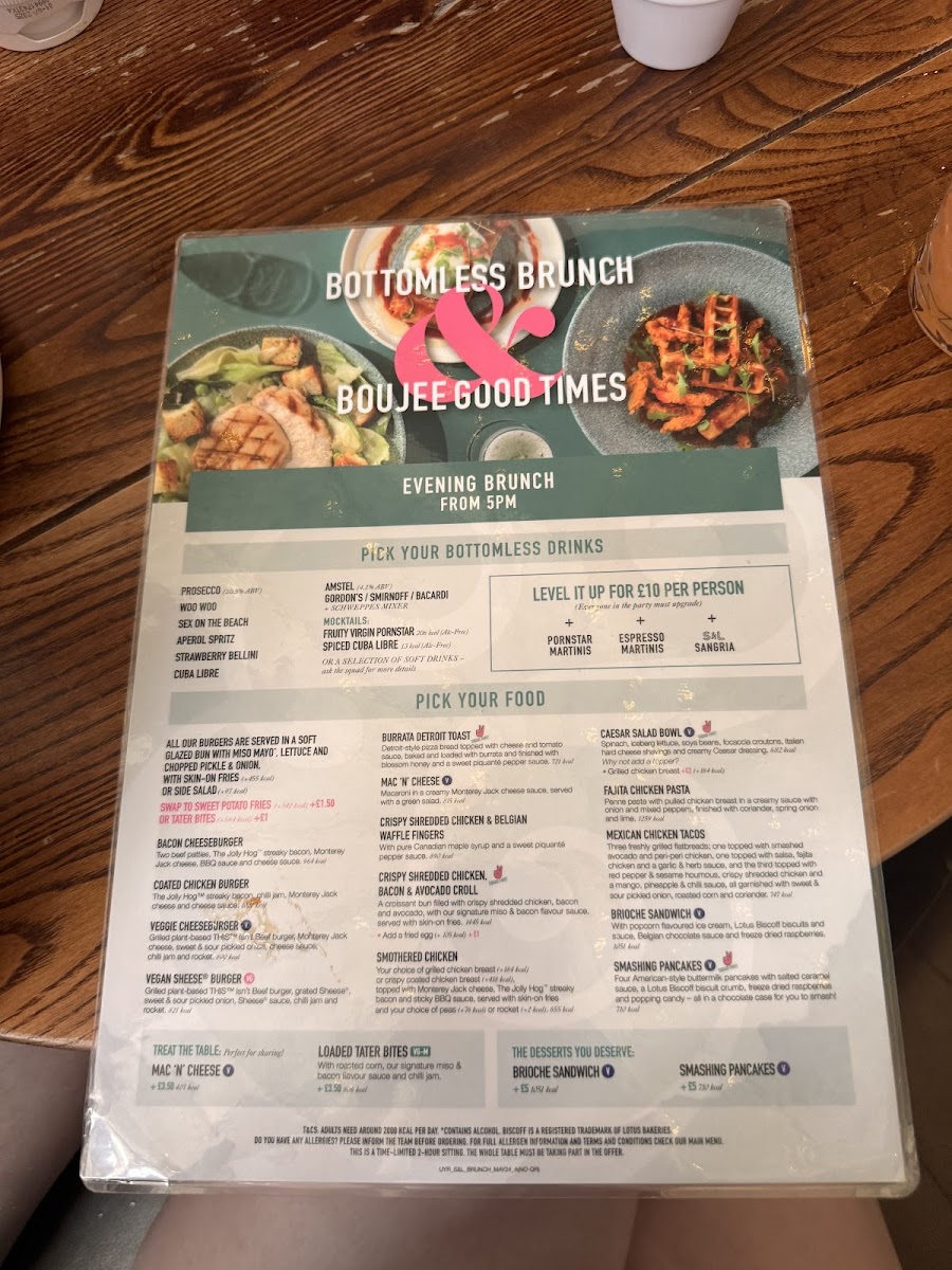 Complement your meal with bottomless drinks including Prosecco and Mimosa for a true indulgence. With attentive service from staff like Charlotte and Kirsty, you'll feel pampered while enjoying this culinary adventure. Slug & Lettuce is not just a meal; it's a memorable experience that will leave you wanting more!